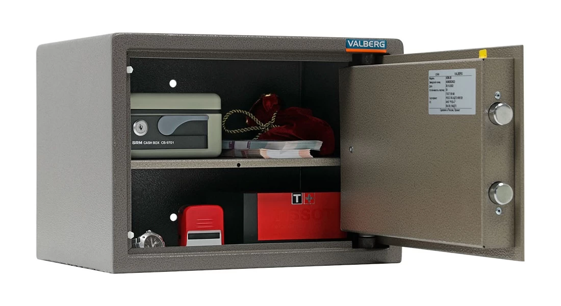 Выбирал пистолетный сейф. Из бюджетных вариантов предложили сейф Valberg ASM-28. По сути в нём можно хранить и деньги. Взломостойкость не очень высокая, зато и цена бюджетная. Лучше его устанавливать в помещении, которое находится под охраной. У нас дом охраняется. Замок ключевой (Германия). Цвет сейфа нейтральный. Для надежности закрепили его анкерным болтом. К сожалению болт в комплект не входит, покупали сами.