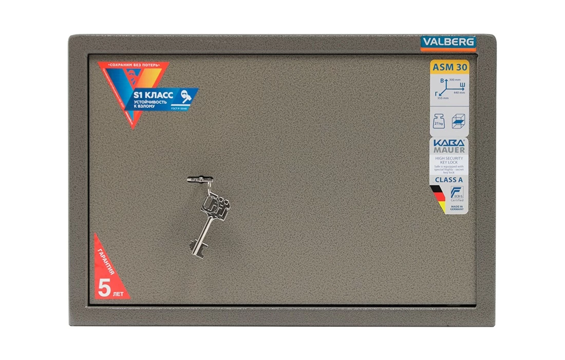 Valberg ASM-30 обладает сертификатом качества, удостоверяющим взломостойкость начального класса S1 в соответствии со стандартом ГОСТ Р 55148-2012.